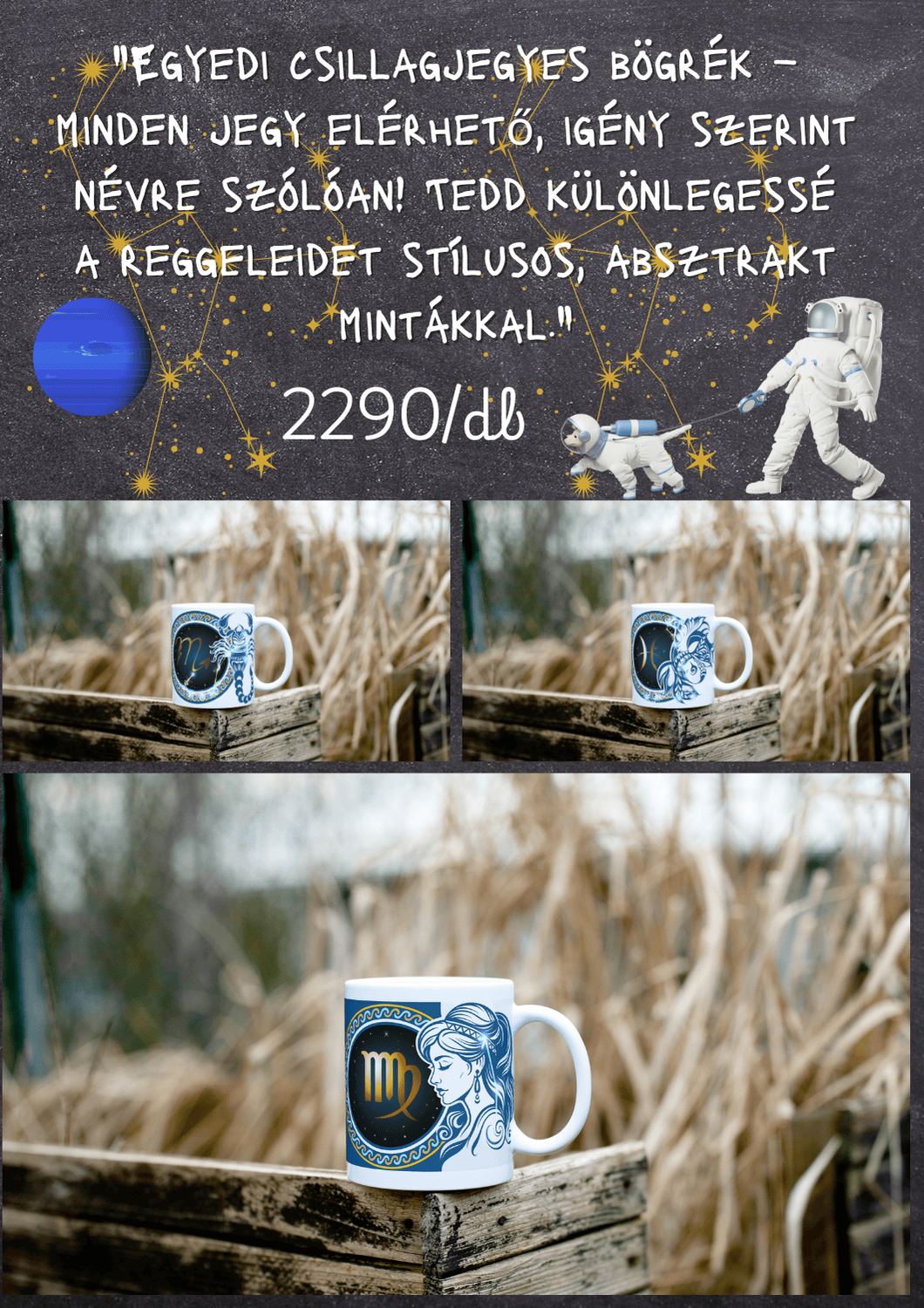 "Fedezd fel egyedi bögréinket, amelyeket akár saját igényeid szerint is elkészítünk! Legyen szó különleges darabról a mindennapokra vagy személyre szabott ajándékról, nálunk megtalálod a tökéletes megoldást. Kínálatunkat folyamatosan bővítjük, hogy mindig a legjobb élményt és változatos választékot nyújthassuk számodra."