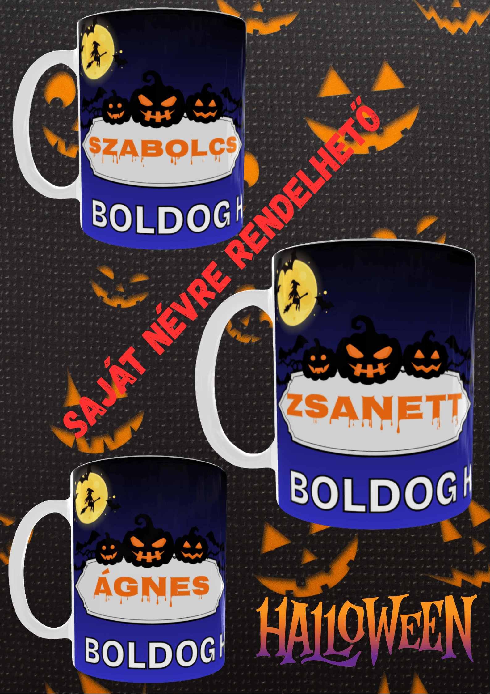 „Halloweent hangulat bögrében – Boldog Halloweent felirattal, akár a saját fényképedre szabva!” 🎃