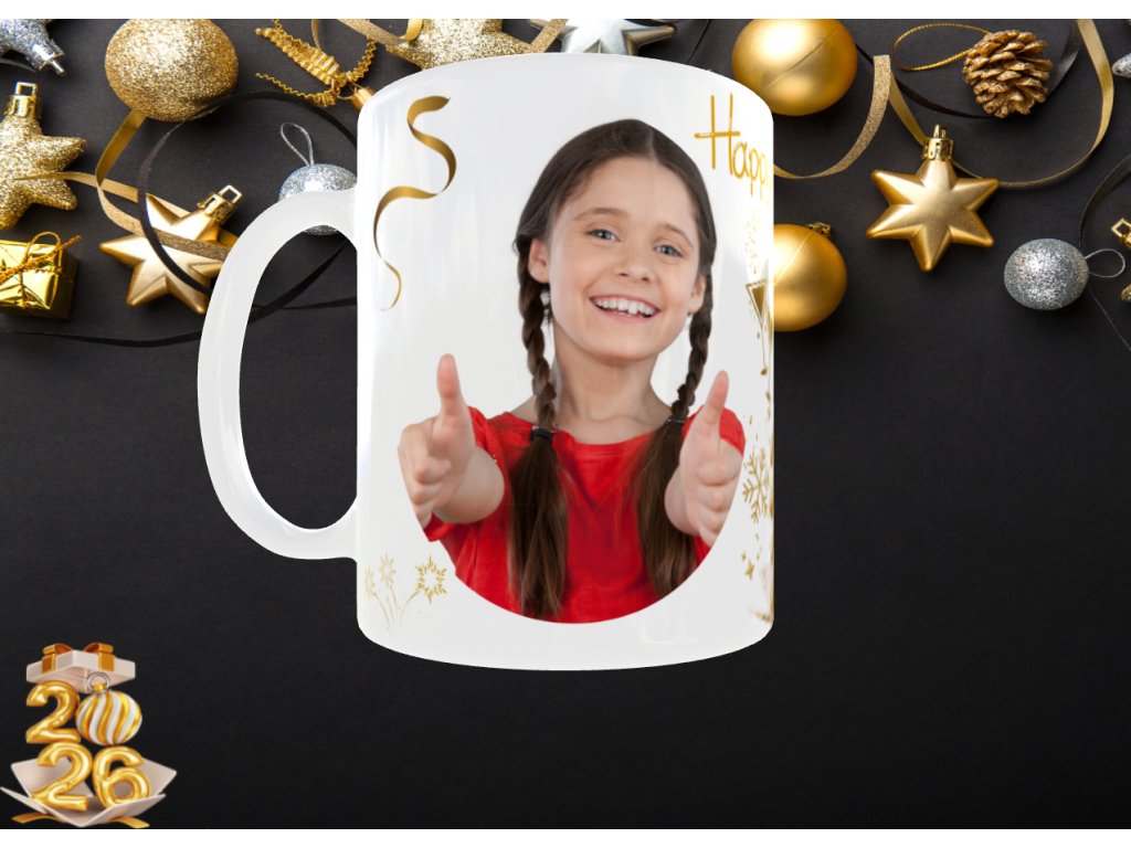 Újévi egyedi fényképes bögre – gyerekek fotóival (3,3 dl)